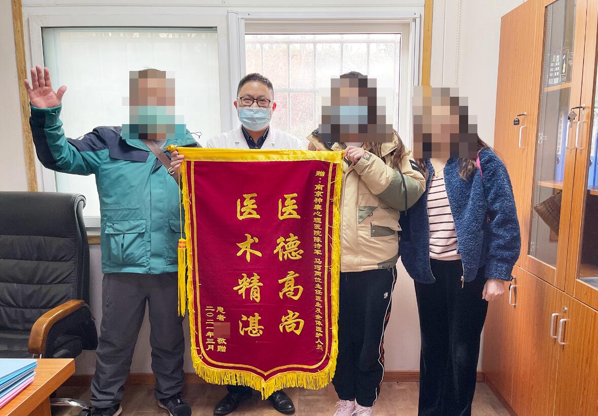 出院后,医院多次进行电话及微信回访,患者及家属遵医嘱按时按量服药,且定期来院进行复诊,情况一直比较稳定。吴冉及家属特地送来锦旗对医护团队表示感谢,对南京神康心理医院表达敬意。